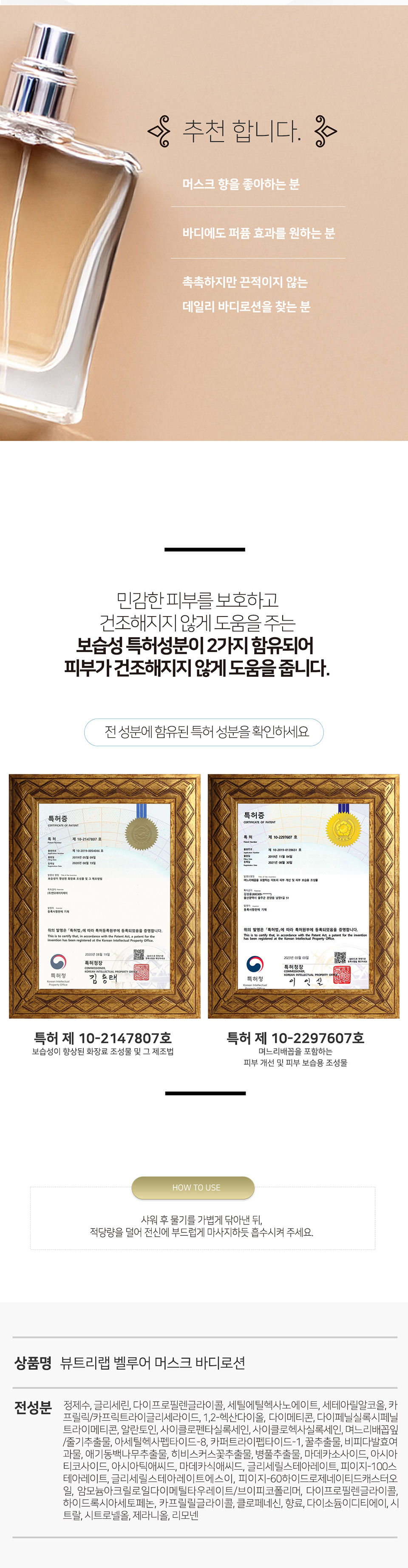 사용방법 | 샤워 후 적당량을 피부에 펴 발라 부드럽게 마사지 합니다. |
